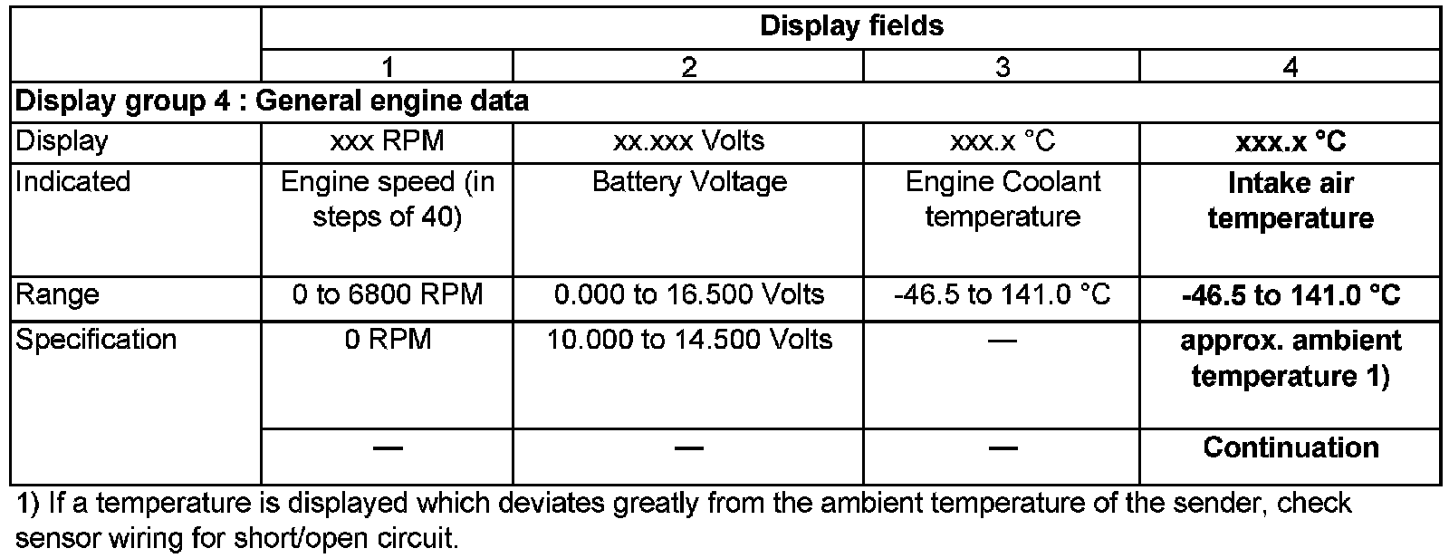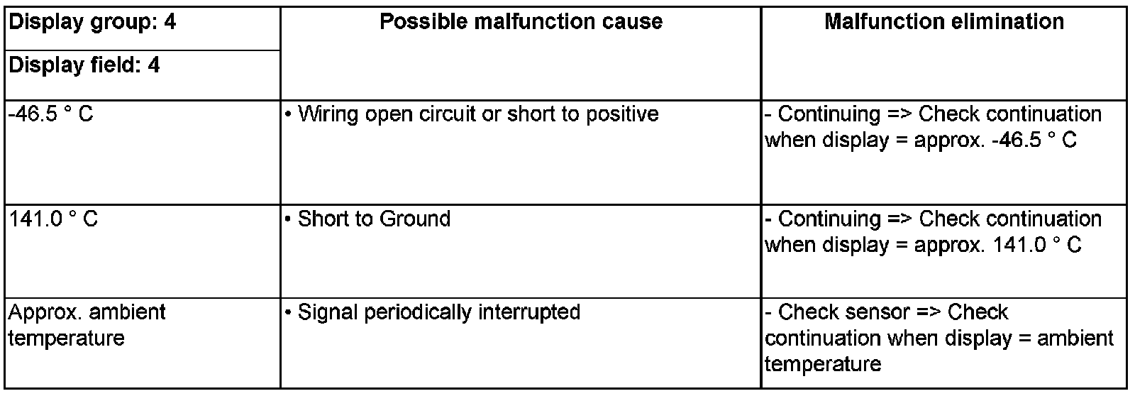 If sensor or connecting wiring is faulty, the Engine Control Module operates with a substitute temperature of 19.5 °C.