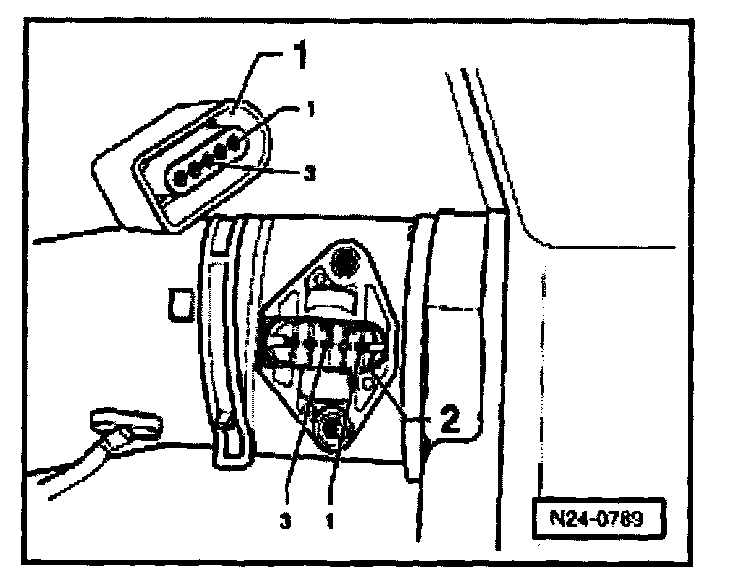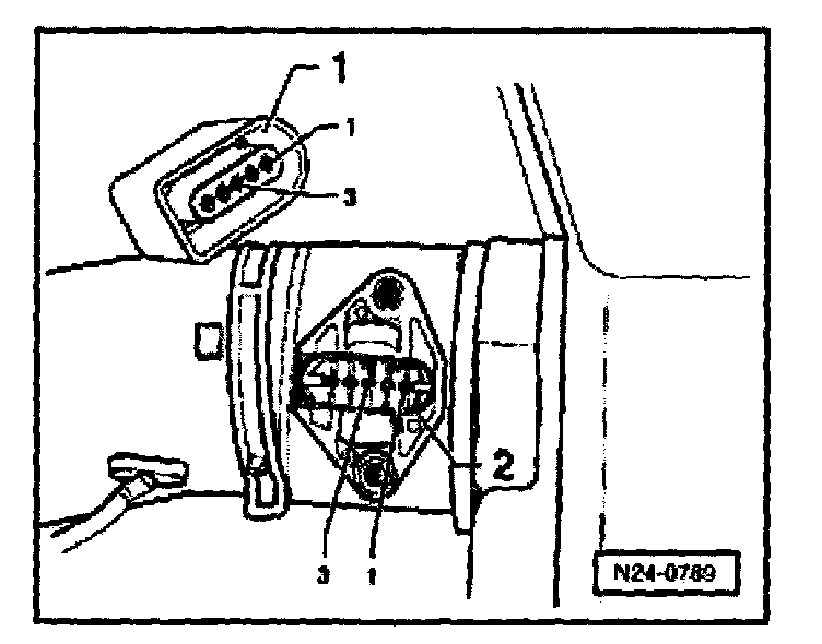 - Disconnect 5-pin harness connector -1- from Mass Air Flow sensor -2-.