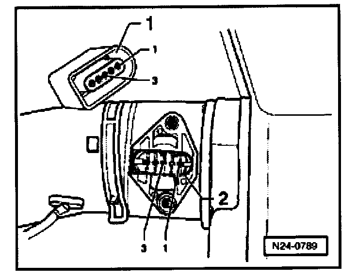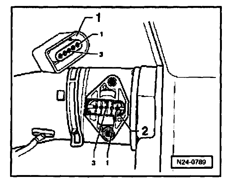 - Measure resistance at Intake Air Temperature sensor G42 terminals 1 (signal) and 3 (Ground).