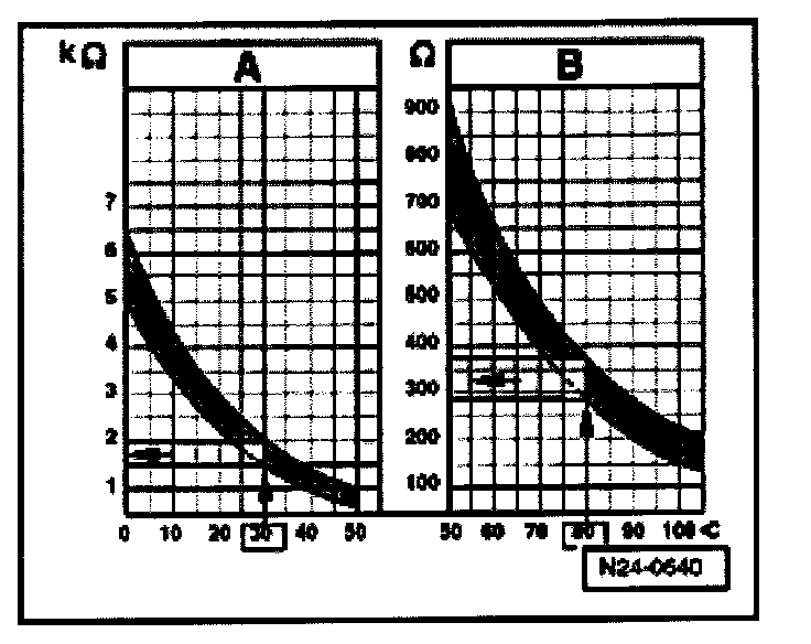 - 30 °C (range A) corresponds to a resistance of 1.5 to 2.0 kohms