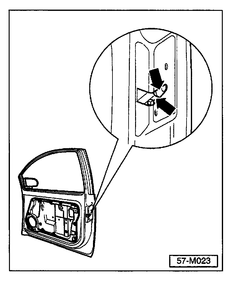 - Lubricate door locks at -arrows- using silicone spray Part No: D 007 000 A2 in short bursts.