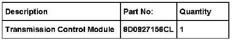 - Replace Transmission Control Module (TCM).See Required Parts and Tools.See ElsaWeb - Repair Manual, Fuel Injection & Ignition, 1.8 Liter 4-Cyl 0.5V Turbo Generic Scan Tool, 38 Automatic gearbox, gears, control, Transmission Control Module (TCM).