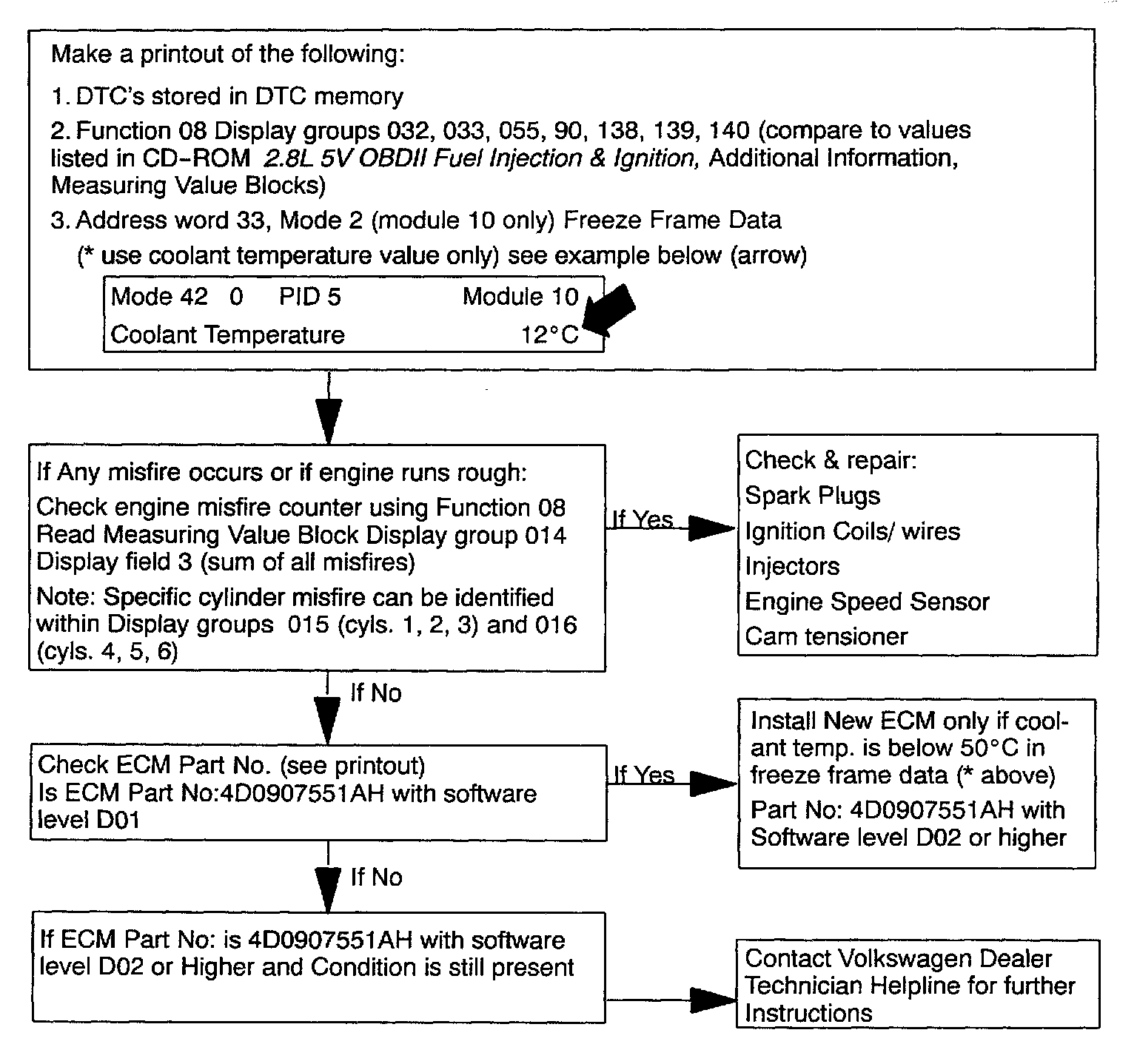 - With VAG 1551 connected, perform procedure as outlined on the illustrated chart.