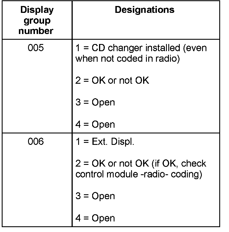 Read measuring value block (function 08)Note: 6 display groups display up to 4 measuring values each.