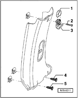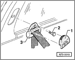 - Unclip cover cap - 1 -, remove screw - 2 - and remove coat hook - 3 -.