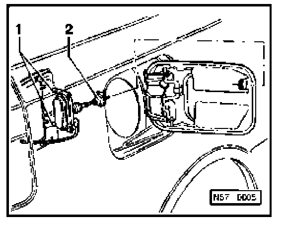 Tank flap positioning element, removing and installingBi-pressure pump removed and trunk trim released.