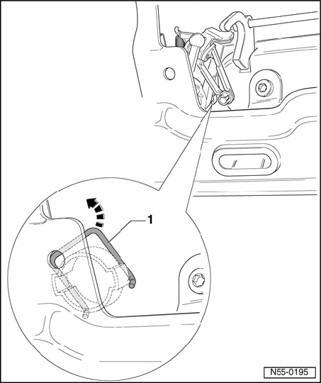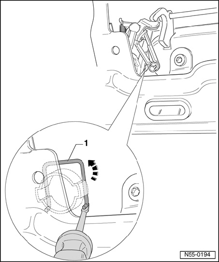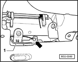 - Insert retaining clip - 1 - and hold bowden cable with retaining clip - 1 - .