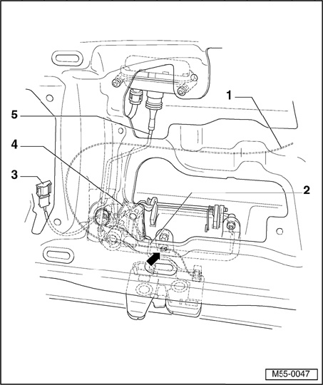 - Unclip operating rods - 1 - and - 2 - on lock cylinder housing.