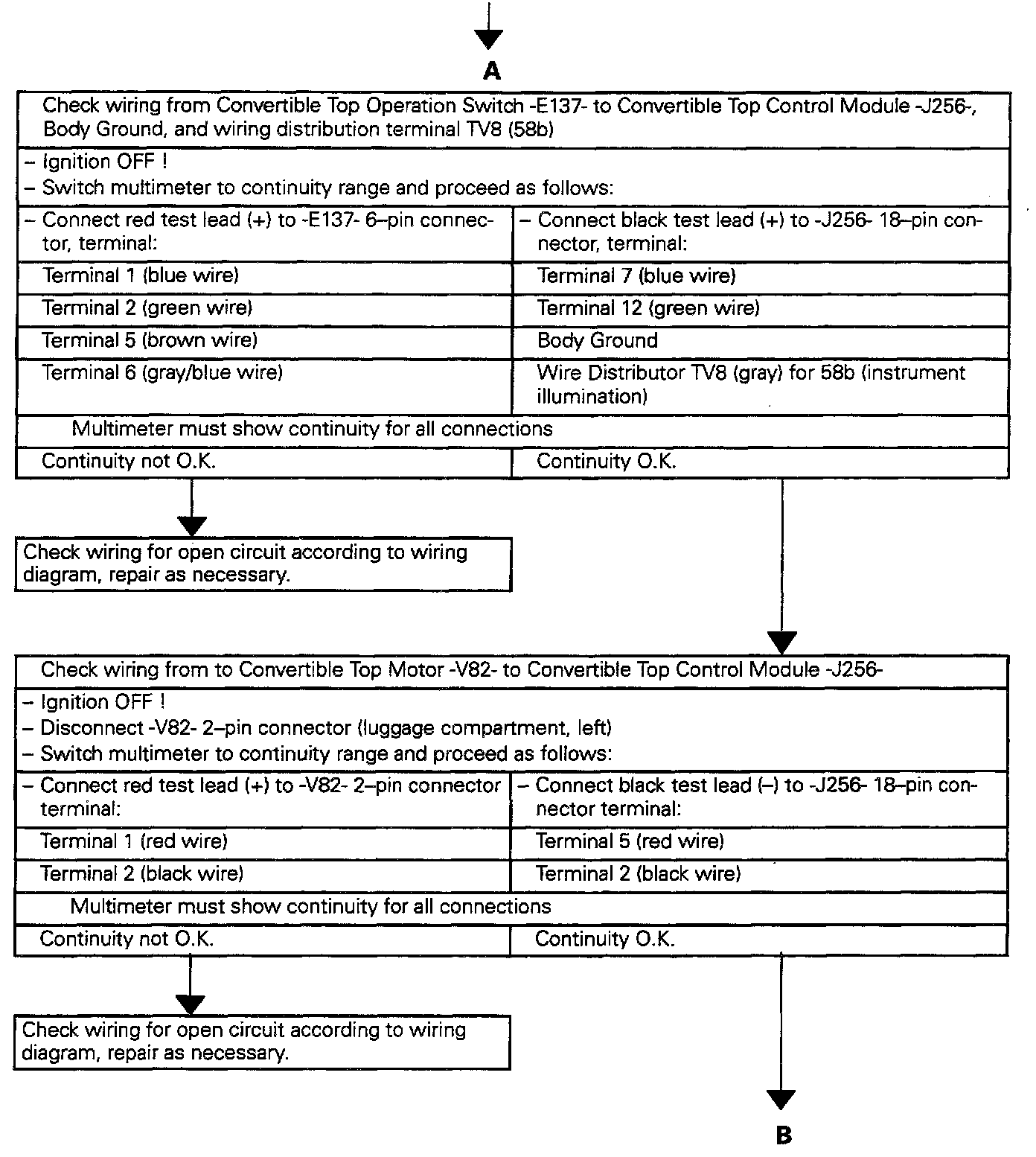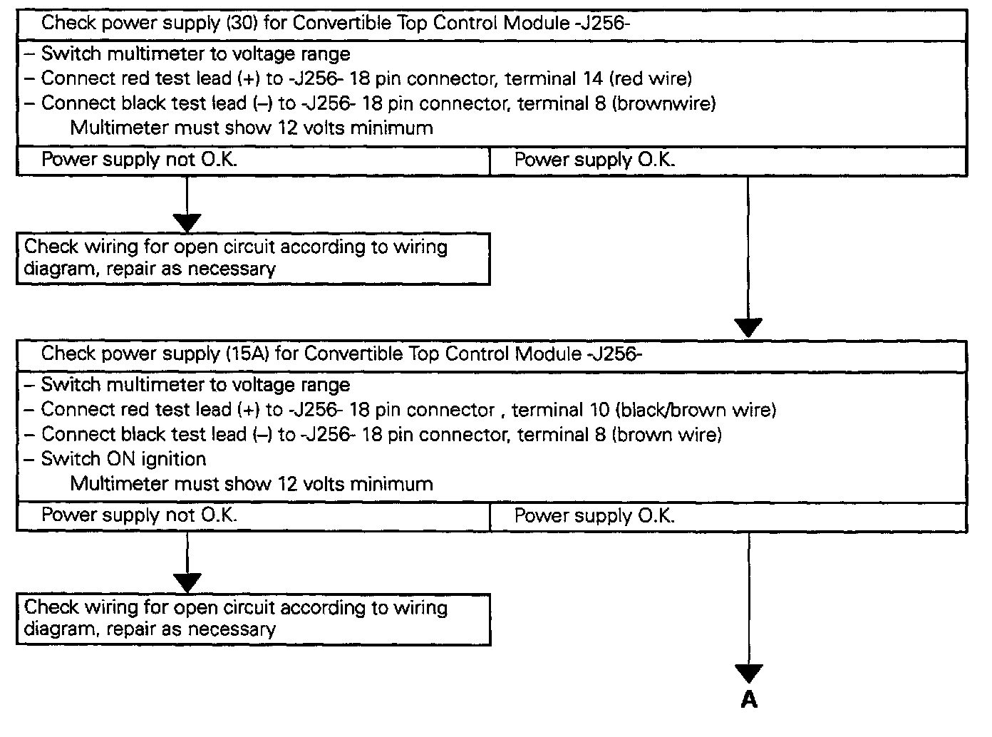 - Disconnect 18-pin connector from Convertible Top Control Module -J256-.