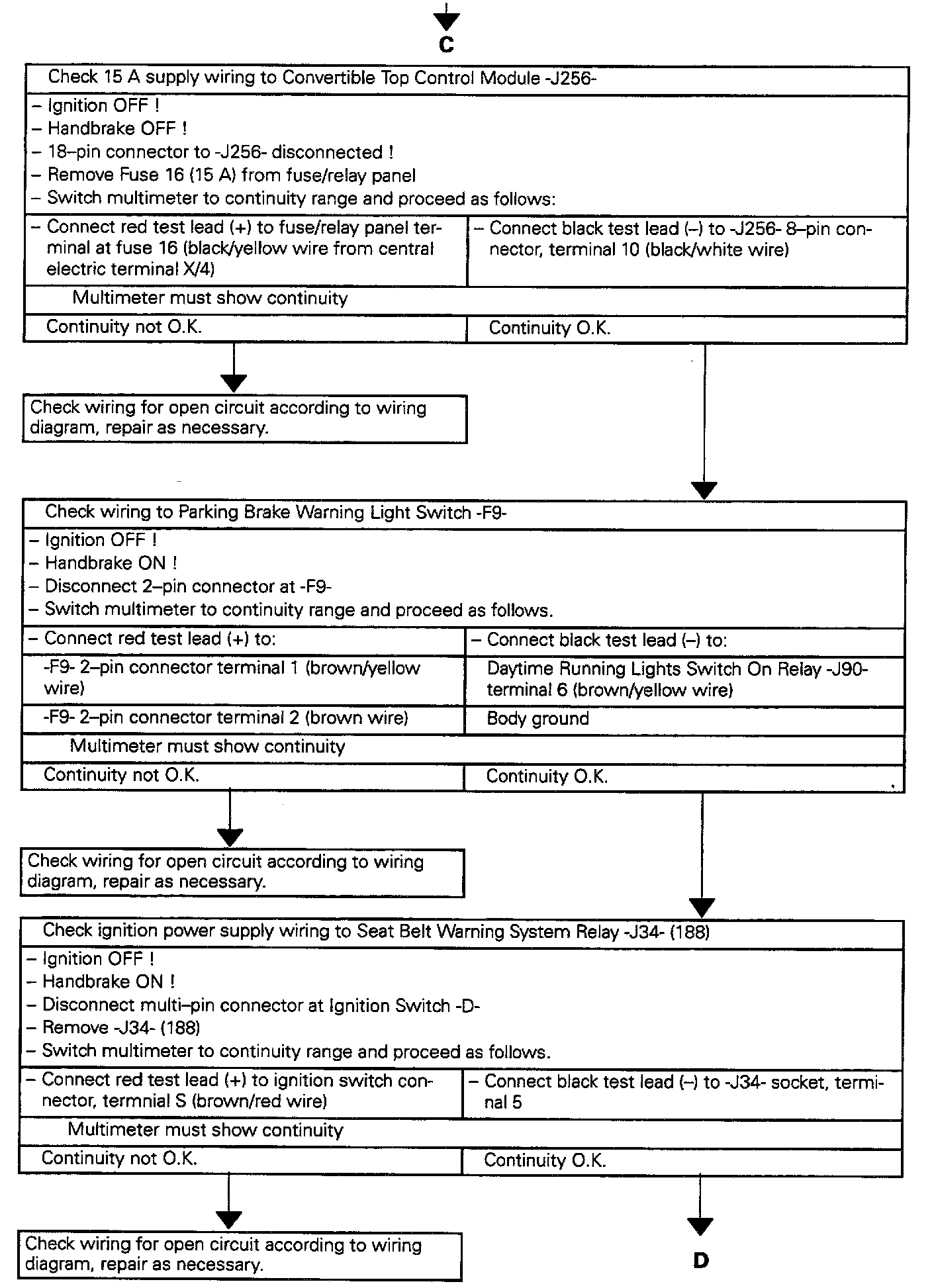 - Circuit Breaker S68, 20 A (behind fuse/relay panel) O.K.