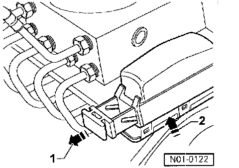- Release control module connector (arrow -1) and pull off (arrow -2).