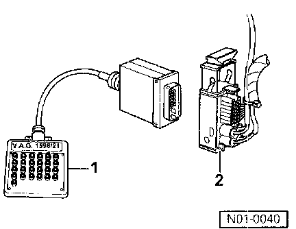 - Remove multi-pin connector from Control Module -J104- and connect test box VAG 1598/21 -1- to connector -2-.
