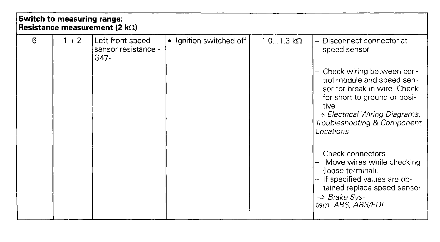 6: Left Front Speed Sensor Resistance -G47-