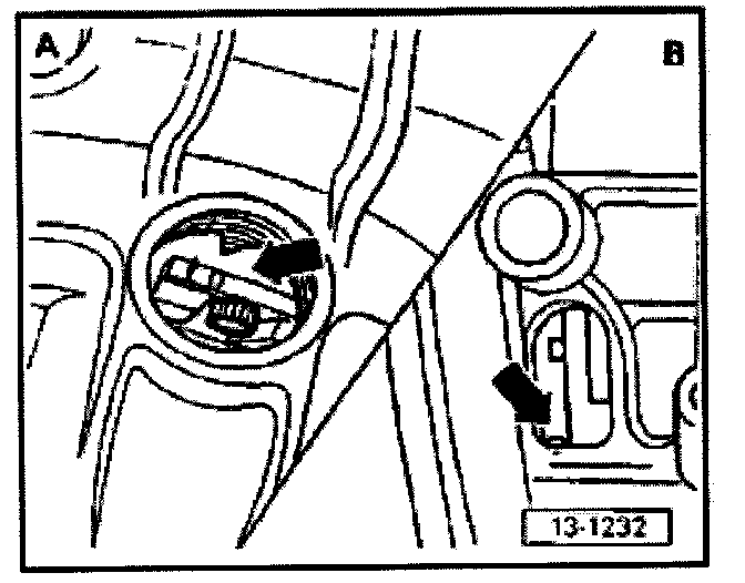 - Turn flywheel -A- or driveplate -B- to align mark (arrows) and place No.1 cylinder at TDC (top dead center).