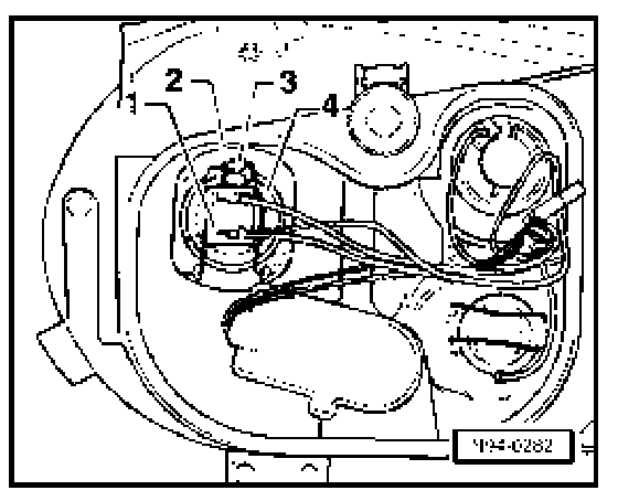 - Disengage spring clip -2- by pushing on locking lugs -3-.