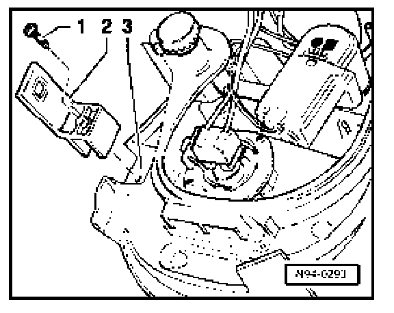 - Place replacement securing tab -2- on secur tab socket -3- and fasten using screw -1-.