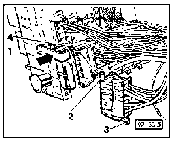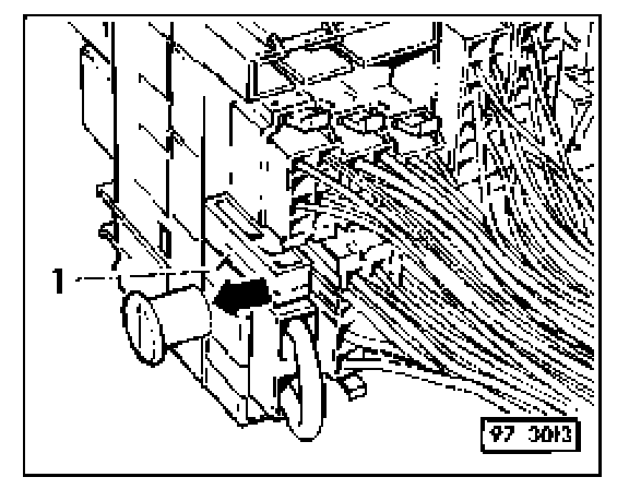 - Pull open locking slide -1 - on back of fuse/relay panel in direction indicated (arrow).