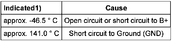 Note: The temperature climbs in increments of 1.5°C. If the engine shows problems in certain temperature ranges and if the temperature does not climb uniformly, the temperature signal is intermittent and the sensor should be replaced.