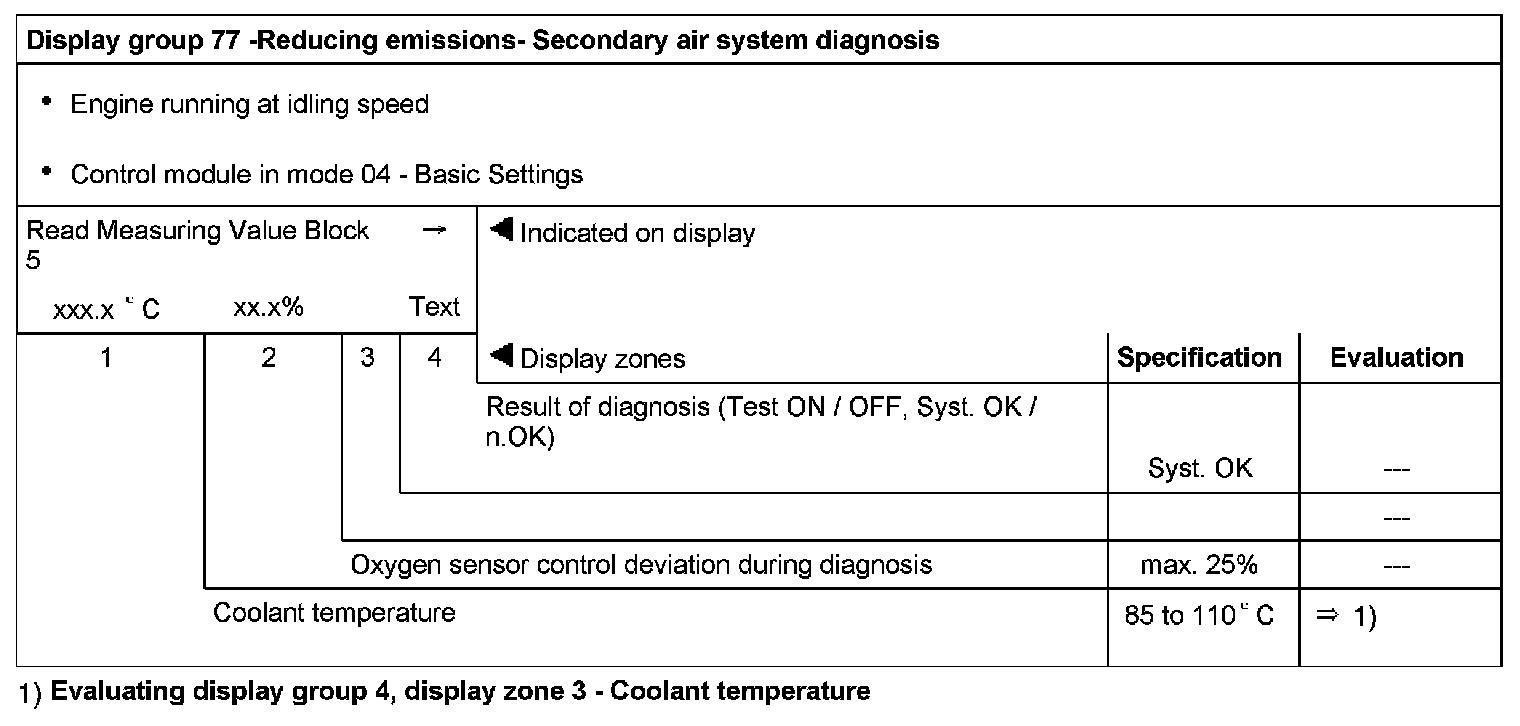 Display group 77 -Reducing emissions- Secondary air system diagnosis