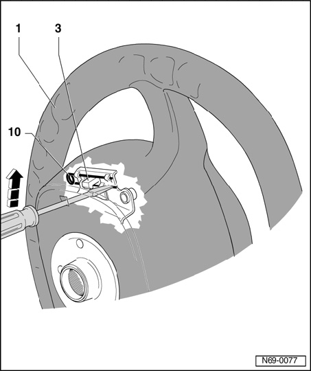 - Press screwdriver in direction of - arrow -. In this case, clamp - 10 - will be pressed back and catch - 3 - of airbag module is released.