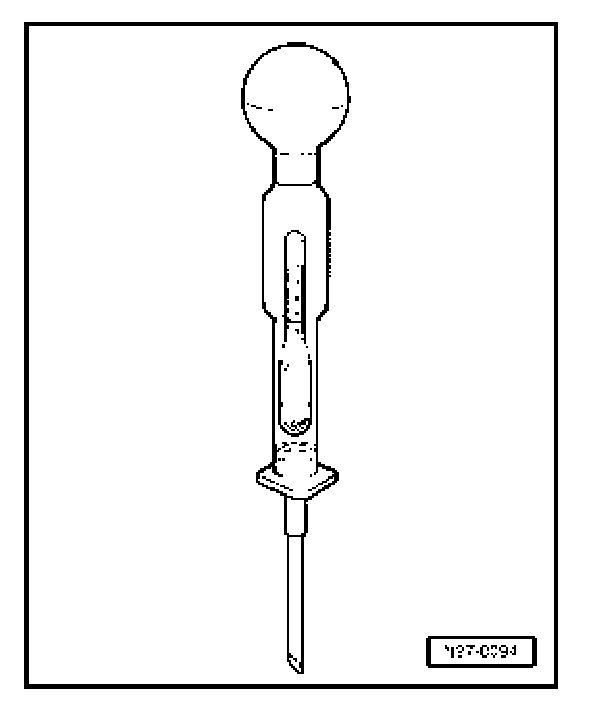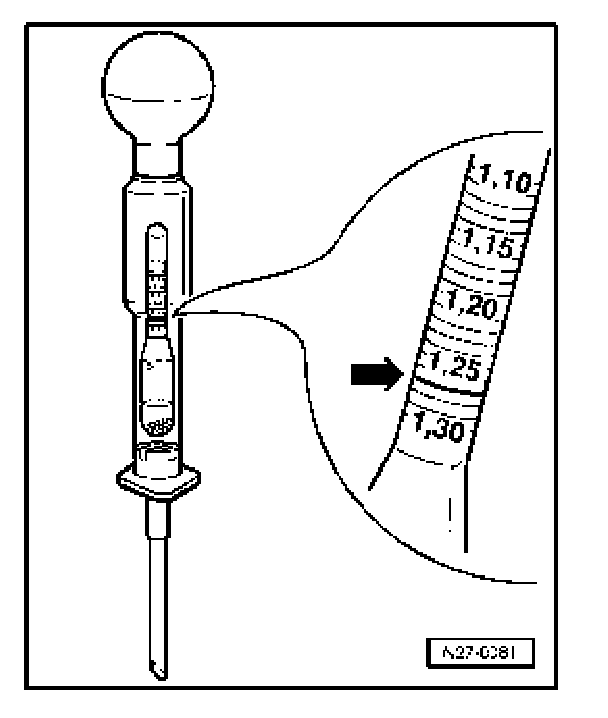 The electrolyte density must be checked in all battery cells as follows: