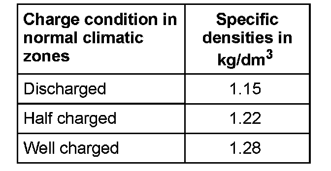 Electrolyte density must be at least 1 .24kg/dm3.