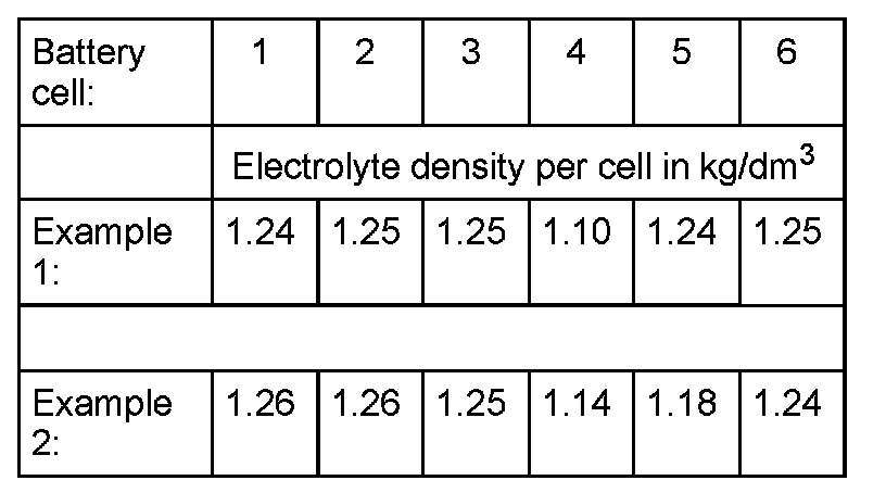 Measured value for electrolyte density of individual battery cells must not differentiate more than 0.03 kg/dm3.