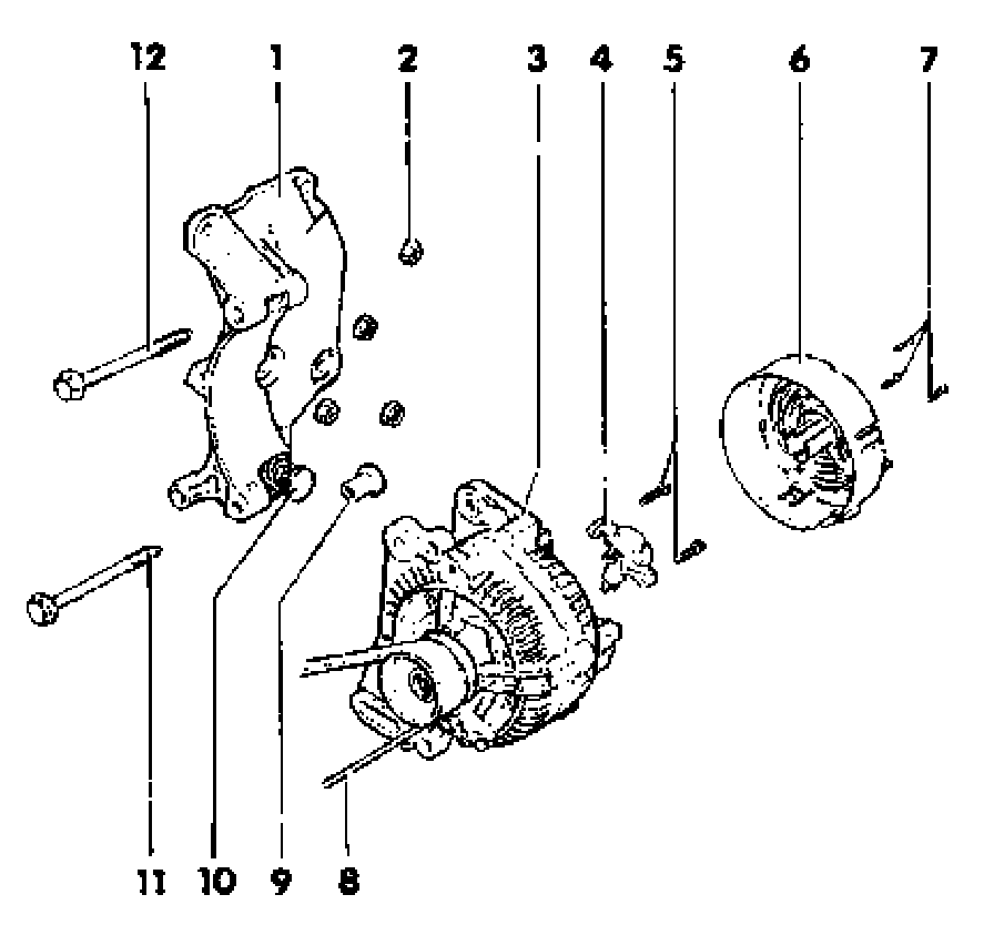 Generator (GEN) with ribbed belt and mounting bracket, assembly4-cylinder gasoline and diesel engines with power steering, without A/C