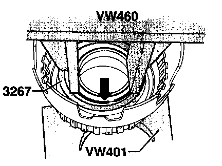 - Press spring supporting plate down with 3267 just enough to remove and install circlip.