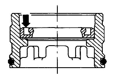 ^ Insert bearing support ring carefully. Sealing lip and spring must not be damaged.