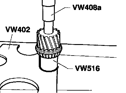 - Insert drive pinion with tapered roller bearing inner race, then drive in outer race.