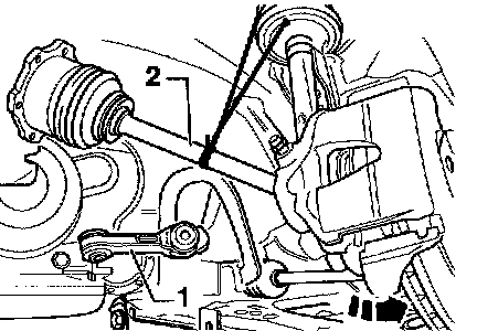 - Disconnect left stabilizer link -1-from control arm and turn coupling rod up.