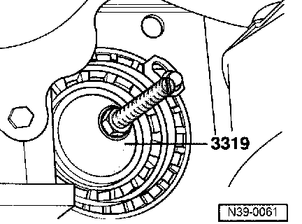 - Install (pull in to stop) new oil seal with press piece 3319, M10 threaded rod approx. 80 mm long (3.15 inch) and nut with washer.