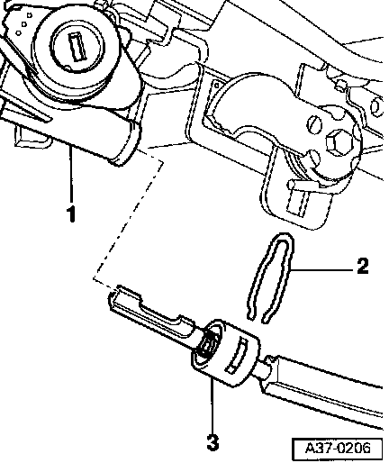 - Pull locking cable out of steering lock -1-.