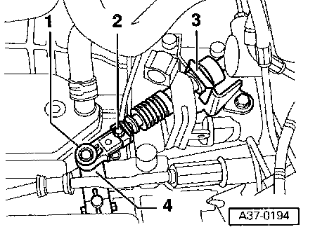 - Pry selector lever cable -1- off lever/selector shaft -4- and route so that the end is free to move.