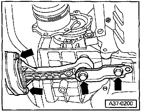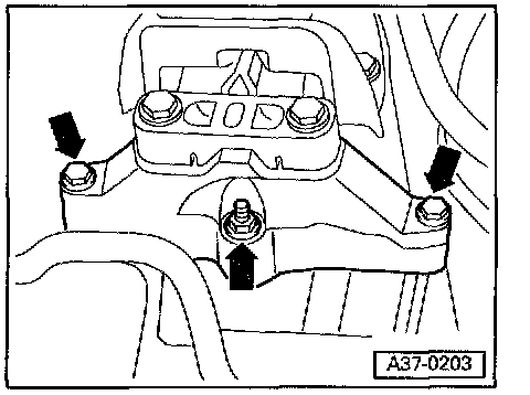 - When transmission has been securely supported, remove bolts for transmission carrier (arrows).