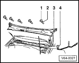 - Push cutting cord through adhesive sealant into vehicle interior using Awl V.A.G 1474/2. Cutting cord is doubled up to windshield wiper axle.