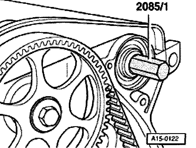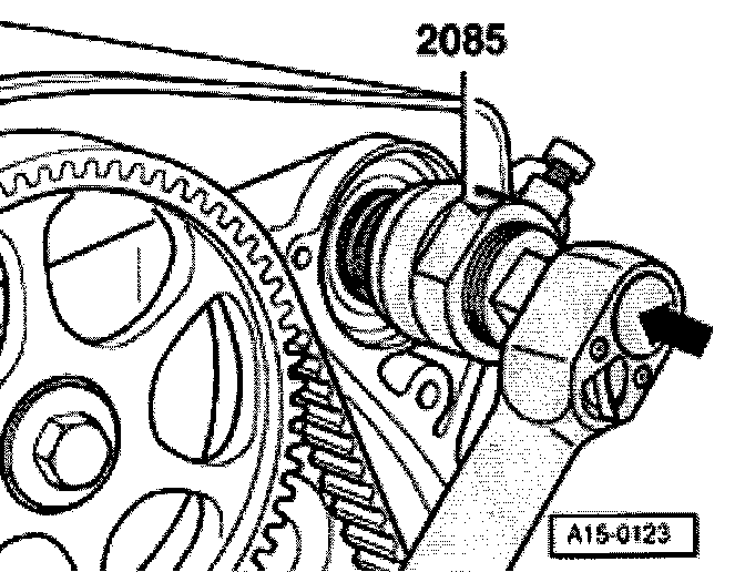 - Screw bolt 2085/1 into camshaft onto stop by hand, to guide seal extractor.