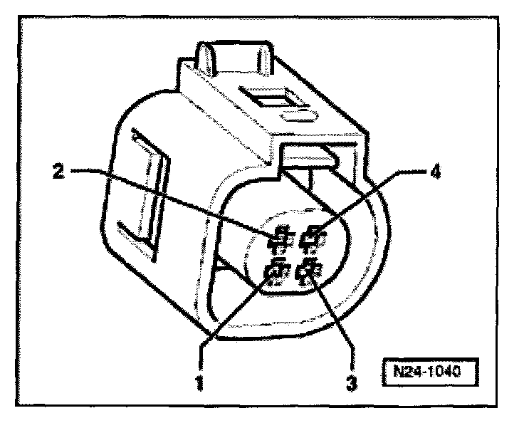 - Pull the 4-pin connector off Engine Coolant Temperature (ECT) sensor (G62) with coolant temperature gauge sender (G2) (arrow).