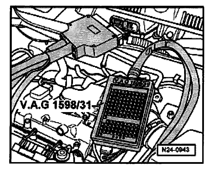 - Connect test box VAG 1598/31 to control module wiring harness. The engine control module remains disconnected.