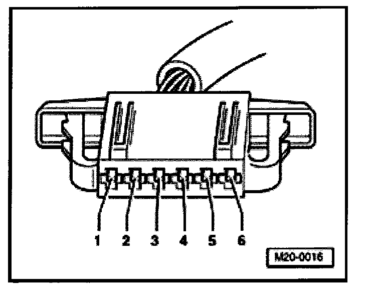 - Connect multimeter to measure voltage at the following contacts of the connector using adapter cables from V.A.G 1594 A