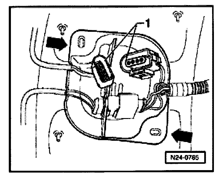 - Remove protective cover -arrows- and separate 4-pin connector (brown) to Oxygen sensor after catalyst (G130).
