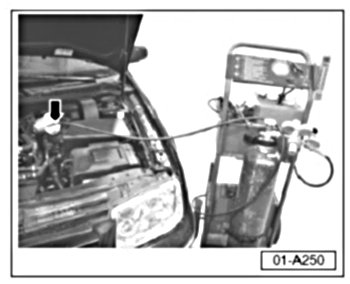 If no leaks are found, but complaint still exists, refer to Repair Group 21 in ElsaWeb for detailed testing of charge system components.