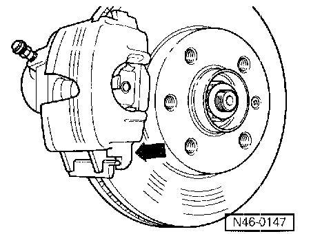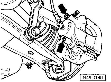 - Remove both guide pins (arrows) from brake caliper.