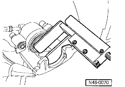 ^ Before inserting new brake pads, press the piston back into the cylinder with the piston resetting tool. Before pressing the piston back, draw off brake fluid from the reservoir with a bleeder bottle. Otherwise, particularly if the brake fluid reservoir has been topped up, fluid will overflow and cause damage.