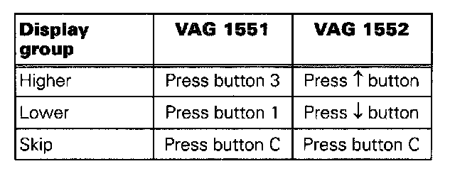 - Press buttons -0- and -8- to select function 08 Read measuring value block.
