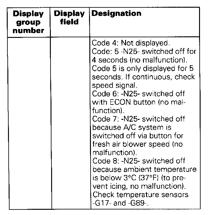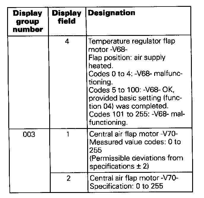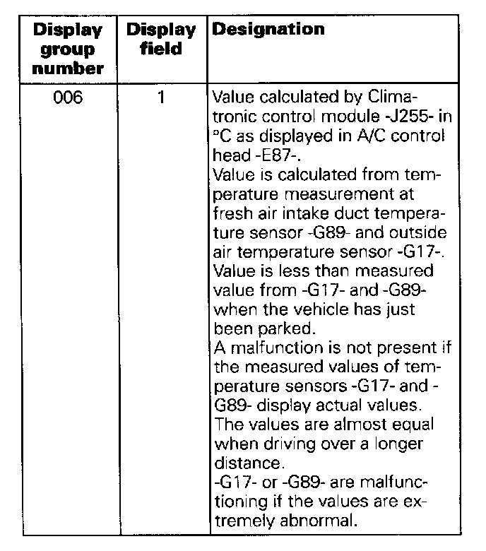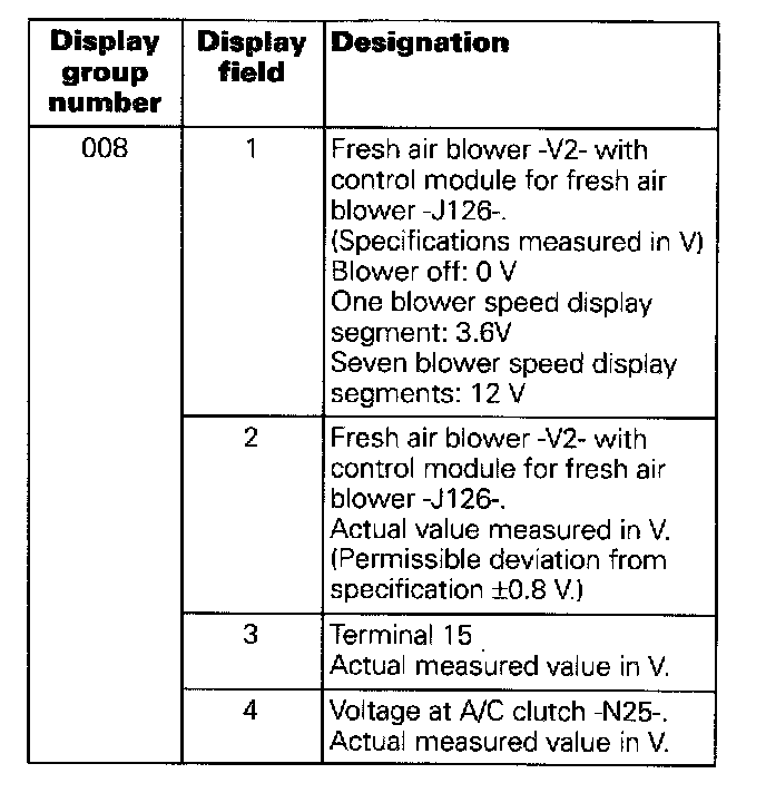 - During the function Read measuring value block, the Climatronic regulation is in operation.