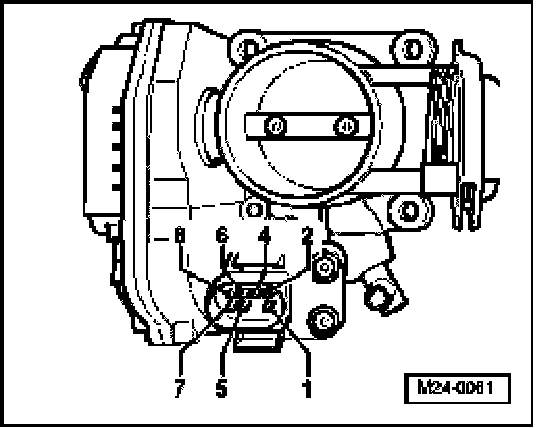 - Measure resistance of Throttle Position (TP) Actuator -V60- between the following terminals.