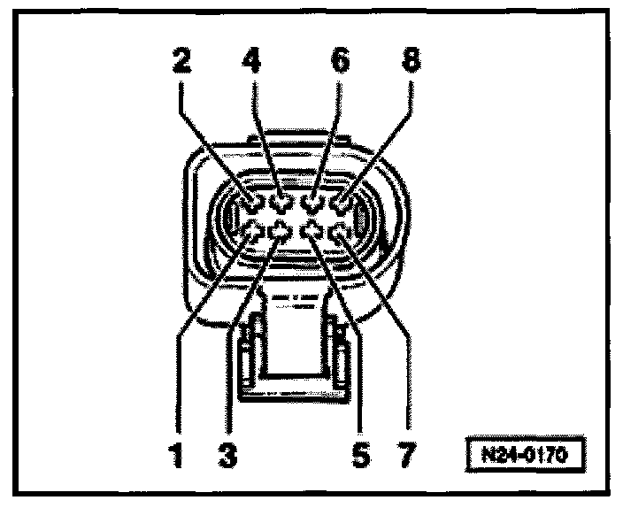 - Bridge following harness connector terminals with auxiliary cables from VW1594 and observe display.