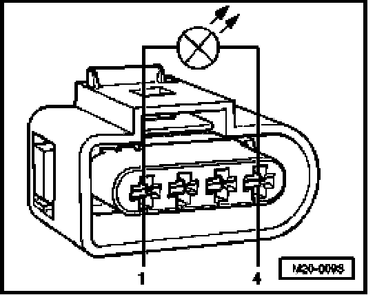 - Connect VAG1527 diode test lamp to the outer terminals of the connector.